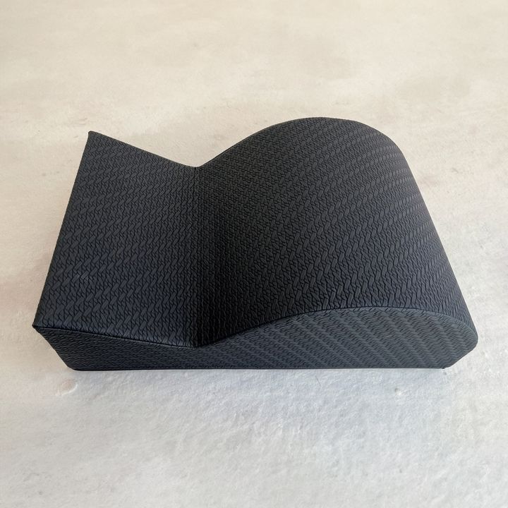 「くじら」と呼んでいるフレックスバレル®。くぼみに寝そべって起き上がるだけで腹直筋と体幹が鍛えられます。ジムで効果を感じ、即自宅用に購入。気づいたときにやっています。
