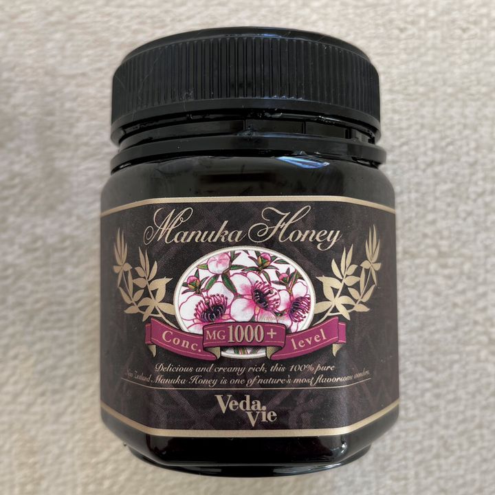 ニュージーランド原産のマヌカの花から採れる蜂蜜。MG値「1000+」はわずか3%の希少なグレード。1日1口、のど飴をなめるように口の中でゆっくり溶かしていただきます。