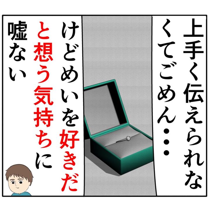 めいさんに結婚指輪を贈ったときは元彼女のジュリ実さんのことがまだ忘れられていなかったと正直に打ち明けたろみ緒さん。そして、めいさんを好きだと想う気持ちに嘘はなく、今一番大切なのはめいさんとあかりちゃんだと伝えました。めいさんはろみ緒さんの話しを聞きながら、ろみ緒さんの言葉に嘘はないと感じつつも、どうしても素直に受け取ることが出来ません。信じていたろみ緒さんに裏切られためいさんは、ろみ緒さんのことが信用できなくなっているのですね。言葉では何とでも言えますからね・・。