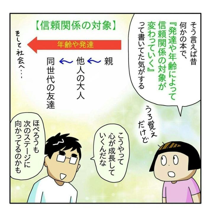 母としては、わが子の成長をそばで見守りたいものですよね。ですが、夫に「じゃますんな」と止められました。親の手を離れ、自分の世界で他人と信頼関係を築くことは、今後の成長に欠かせませんね。