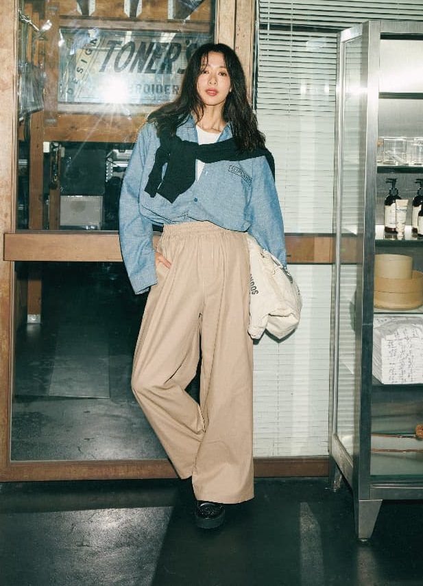 リラックス感とこなれ感を演出してくれるデニムシャツ。落ち感のある太めタックワイドパンツと合わせるとカジュアルでありながらも洗練された印象になり、脚長効果も期待できます。