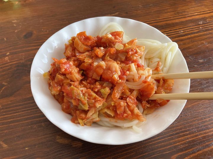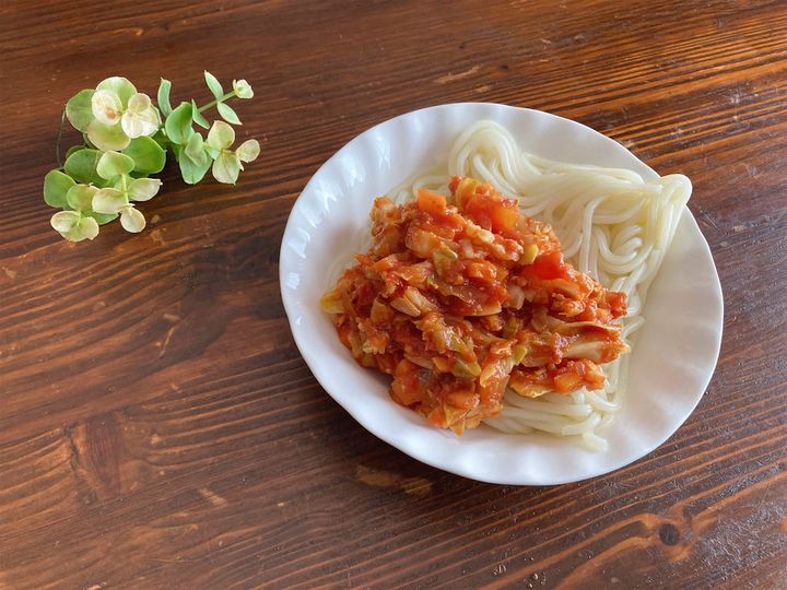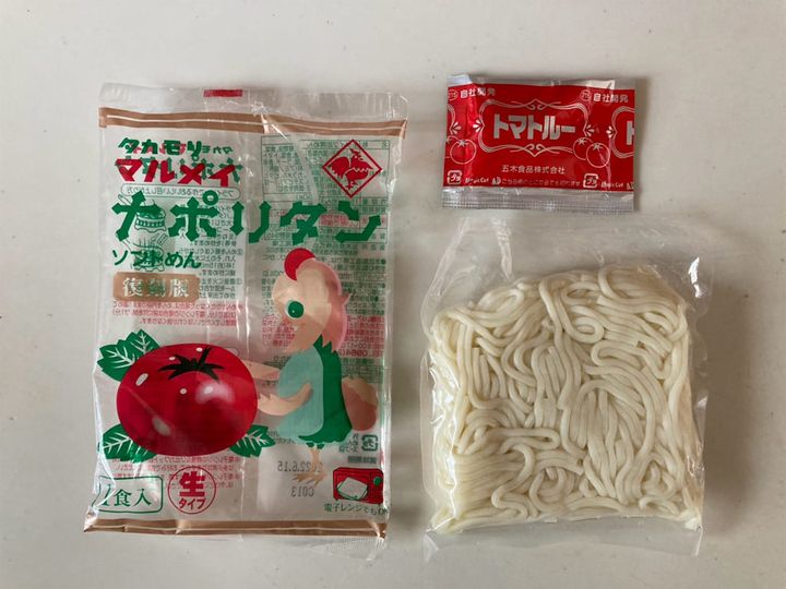 今回は、スーパーの麵コーナーで見つけた『マルメイ ナポリタン(ソフトめん)』を使用し、自家製ミートソースをかけて再現していきたいと思います。