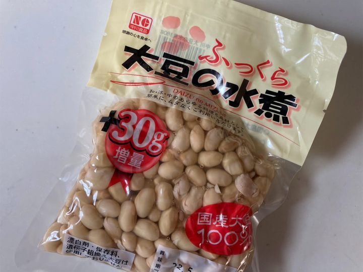 乾燥大豆を一晩水に浸けて戻してから作ってもいいですが、市販の大豆の水煮を使えば、パパっと気軽に作れます。