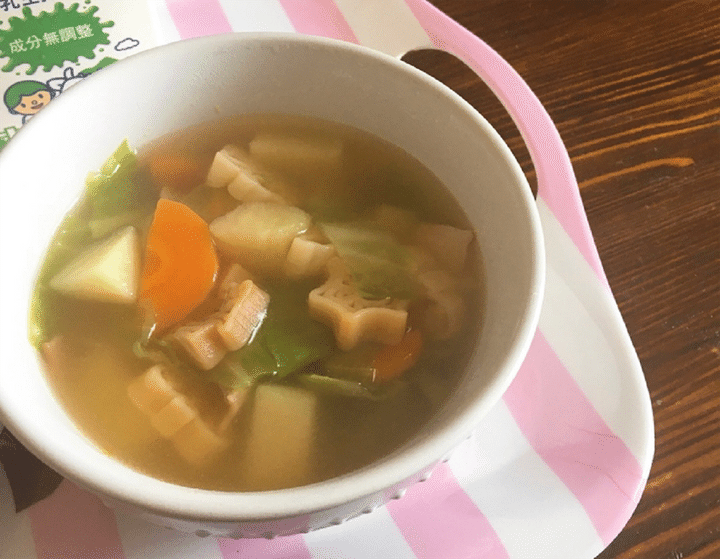 ⑤苦手な野菜も食べられる♪「マカロニスープ」