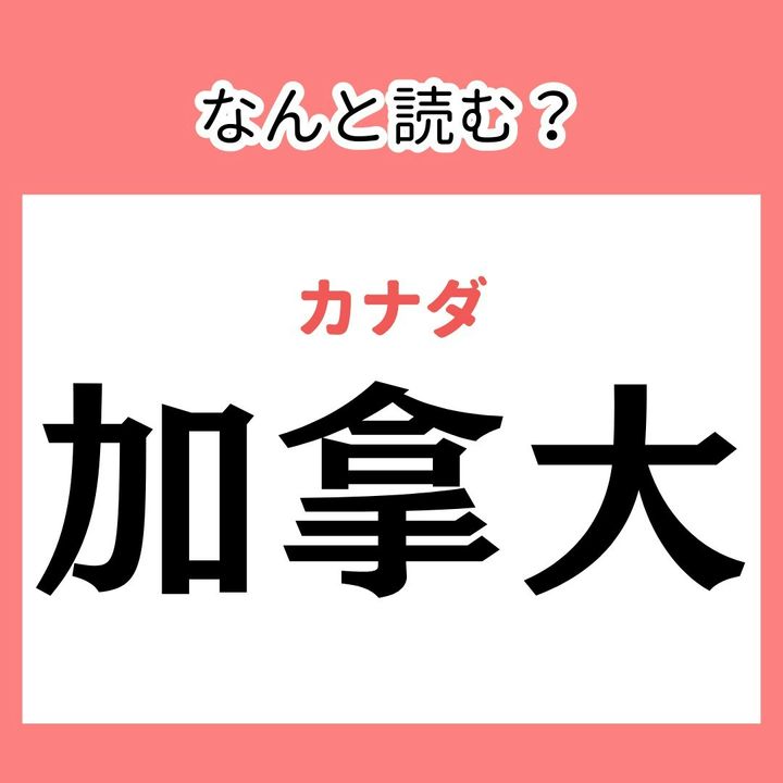 日々の忙しい生活の中で、ちょっとした息抜きを求めている方もいることでしょう。そんな時にぴったりなのが「難読漢字」。頭をひねりながら、その読み方や意味を想像することで、頭のリフレッシュにもなる難読漢字をご紹介します。今回のお題は「加拿大」。あなたは読めますか?