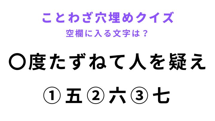「〇度たずねて人を疑え」の空欄に文字を入れると、あることわざが完成します。