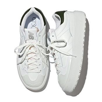 CT302 白スニーカー/ニューバランス(ニューバランスジャパンお客様相談室) 分厚いソールと歩いても疲れないクッション性の高いソール。厚地のホワイトレザーとバックの上部に施されたネイビーの好配色。上質でいてシンプル、履き回しもきく白スニーカーとしてストックしておくと重宝する1足。
