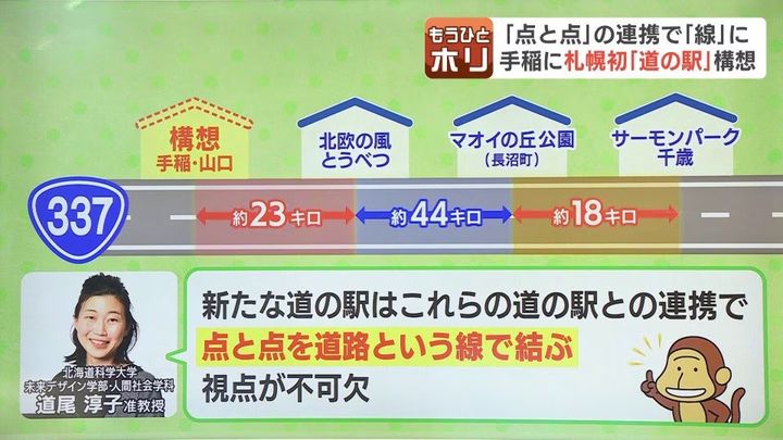 まちづくりが専門の北海道科学大学未来デザイン学部の道尾淳子准教授は「新たな道の駅は、これらの道の駅との連携で、点と点を道路という線で結ぶ視点が不可欠」 だと話しています。