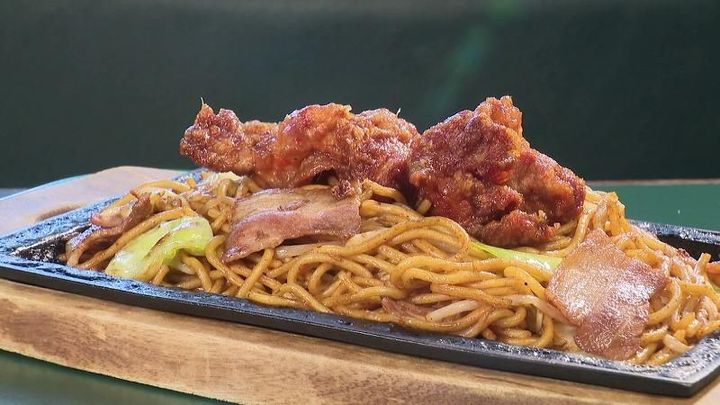 アツアツの鉄板で提供され、あの名物の唐揚げが乗っています。