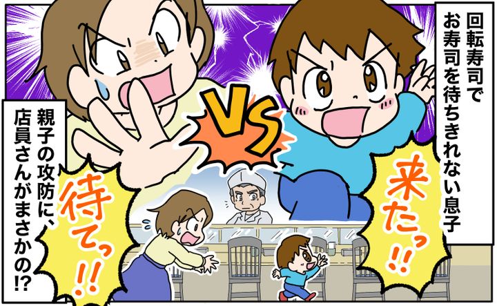 3. 回転寿司「来たっ!」お寿司を待ちきれない息子VS落ち着かせたいママ。親子の攻防に店員さんが…!?