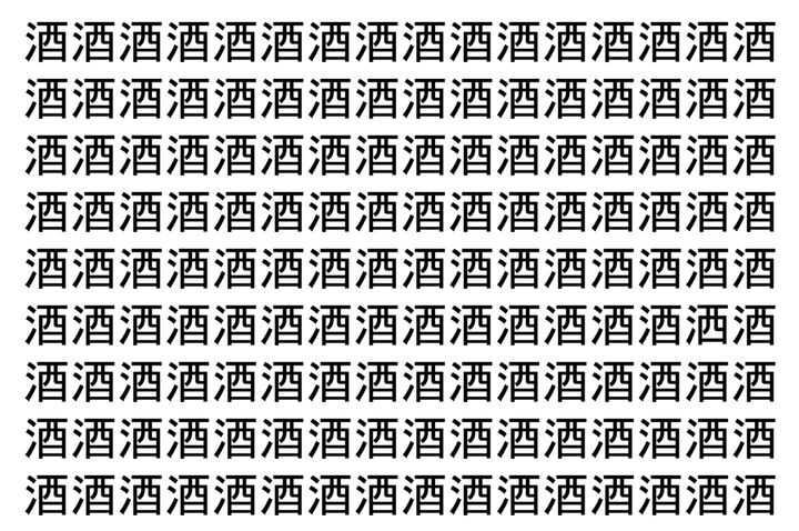 3. 【脳トレ】「酒」の中に紛れて1つ違う文字がある!?あなたは何秒で探し出せるかな??【違う文字を探せ!】