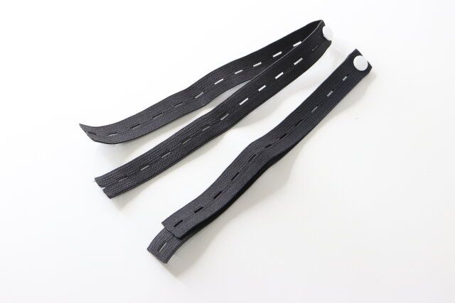 ボタンで留めるタイプなのですが、ボタンを通す穴が無数についているので厚みに合わせて調節がしやすいのが特徴です。