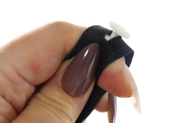 あとは、固定したい位置でバンドの穴にボタンを通すだけでOK。