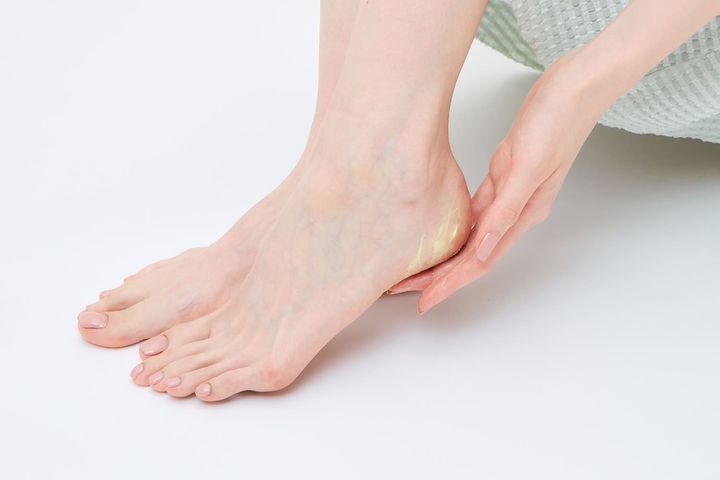 特にポイントは、「かかと」です。みなさんケアが怠りがちなのが、かかとのケア。かかとが固くなってしまうと落ち込んでしまいます。かかとはひび防止のためにたっぷり重ねて塗ります。また、かかと削りや角質除去は皮が厚くなり固くなる可能性があるので、自己流はおすすめしません。角質ケアをする時は、入浴中に綿タオルで優しくなでて、お風呂上がりにこちらのクリームをたっぷり塗るようにしています。ケアを毎日続けていると角質ができにくい柔らかい足になるので、本当におすすめですよ。