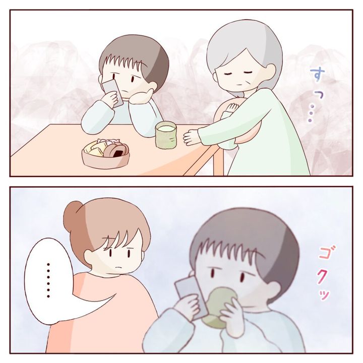 その後も、義実家で何もせず、ただただスマホを触っているマサヒコさん。義母がお茶を出しても「ありがとう」も言わずに飲む姿を見て、チエミさんは無言になりました。