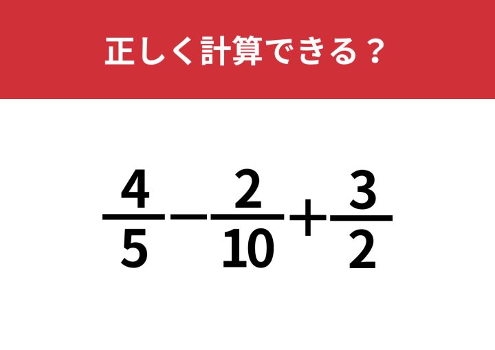 分数の計算のやり方、覚えてる?「4/5−2/10+3/2」正しく計算できる?