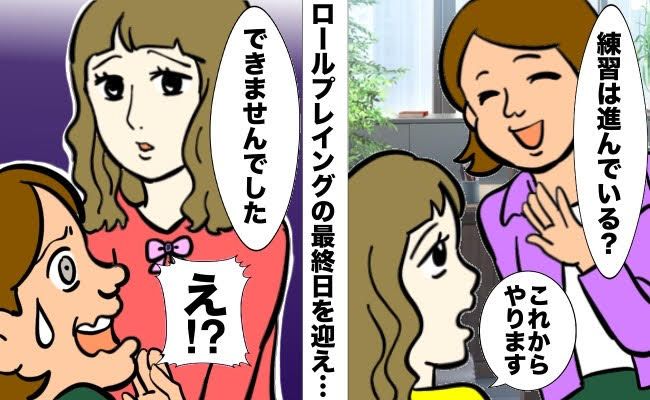 とうとうロールプレイングの最終日。何度も声をかけてきたので、できていないことは予想できましたが、一応確認すると「できませんでした」とひと言。なぜやらなかったのか尋ねると、「やらなきゃいけないのはわかっていたんですけど…」と、はっきりした理由もなく言葉を濁しました。