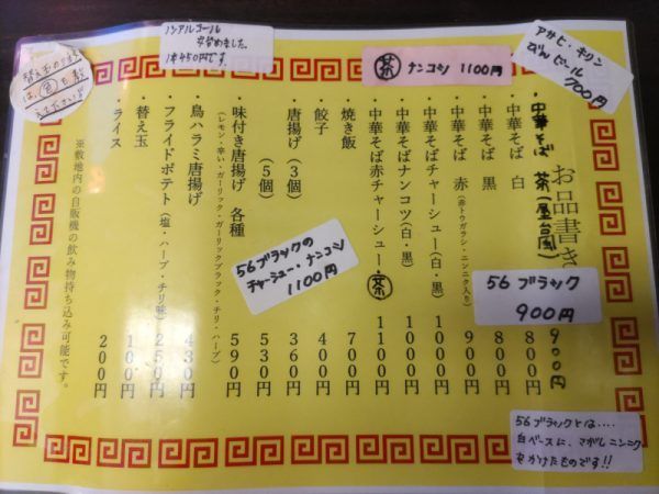 中華そばの白と黒以外に「中華そば茶(豚骨醤油)」や「56ブラック(白+焦がしニンニク)」などの新メニューも続々登場中のようです。全部食べてみたくなってしまう...!これは、また行くしかないですね!!