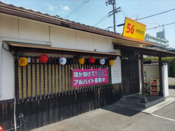 56号沿いにあるラーメン屋で、その名も「中華そば56」。赤と黄色の目立つ看板が目印です。