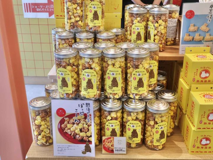 私が気になって選んだのは、「熱海プリンのぽっぷこーん」(税込980円)。見た目も可愛いボトルに、ふんわり大粒のポップコーンがたっぷり詰まっています。