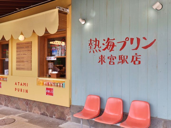 「みんなの待ち合わせステーション」をテーマに誕生した熱海プリン来宮駅店。見た目も味もインパクト抜群の「飲むプリン」をはじめ、ここでしか味わえない限定スイーツやレトロ可愛いお土産グッズが勢ぞろいしています。熱海観光のスタートや來宮神社の参拝帰りに、ぜひ立ち寄ってみてはいかがでしょうか?