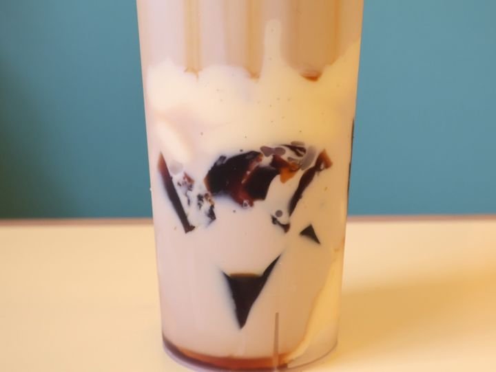 カップの下部は、プリンとカラメルゼリーが層になっており、飲むほどに両者が混ざり合って絶妙なバランスに。プリンが全体の約3分の1を占めていて、ゼリーとともに食感をしっかり感じられるのが特徴です。なめらかすぎないほどよい固さで、飲んでいるのにプリンを食べているような不思議な感覚。一口ごとに味の変化があるのも面白いポイントです!