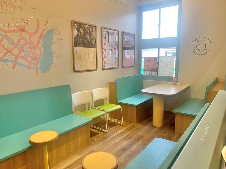 まるで昭和にタイムスリップしたかのような外観が特徴の来宮駅店。駅舎モチーフのたたずまいに、昔ながらのベンチやテイクアウト用スタンドが設置され、まさに“レトロ可愛い”が再現された空間です。