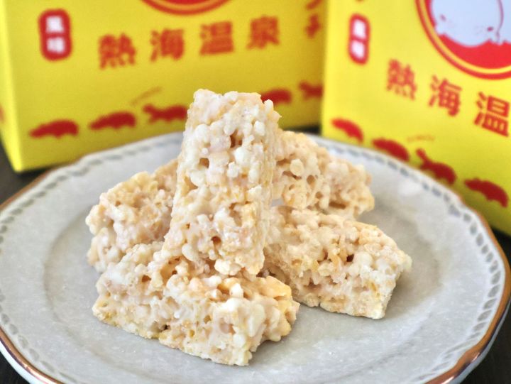 黄色はカスタード風味で優しい甘さ、茶色はキャラメル風味でほんのりビター。どちらか片方でもおいしいのですが、2つを一緒に食べると、まさに“熱海プリン”の味が口の中で再現されるんです! 軽やかな食感で、ついつい手が伸びてしまうおいしさ。熱海プリン好きには外せないお土産です。