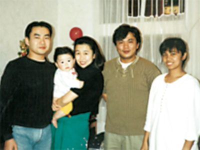 香港で出産したあとの髙橋さん家族とメイドのスーザン(右)。スーザンとの日々が、ベアーズ誕生のきっかけに。