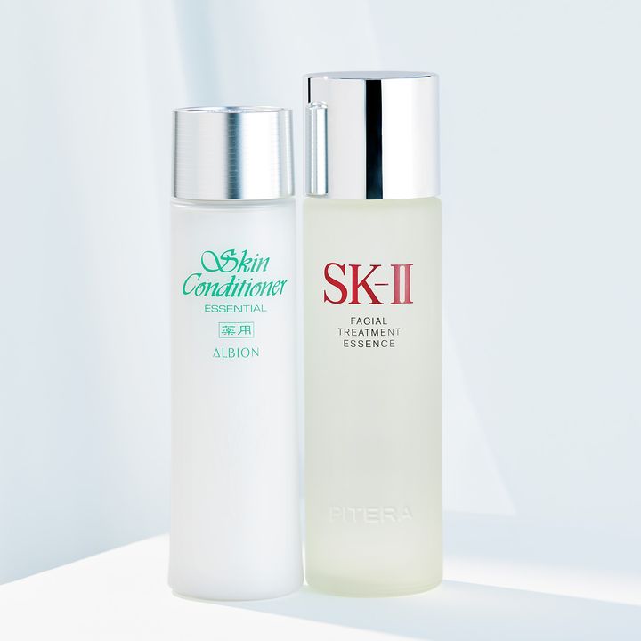 右・特別な酵母を独自プロセスで発酵し生まれるピテラを主成分としたエッセンスはSK-IIの名品。使った日からトーンが上がるとの声も多くクリアな肌を目指せます。フェイシャル トリートメント エッセンス 160ml ¥23,100(SK-II)