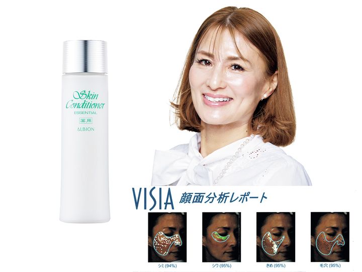 ひどい肌荒れに悩んだのが24歳の時。当時の会社の先輩がアルビオンに連れて行ってくれました。それがきっかけでスキコンを使い始めてからはまさにアルビオン中毒です(笑)。赤みが出やすい私の肌を鎮静してくれ肌トラブルも解消。50代になってもシミが肉眼ではほとんど気にならない肌でいられるのもスキコンのおかげだと信じています!