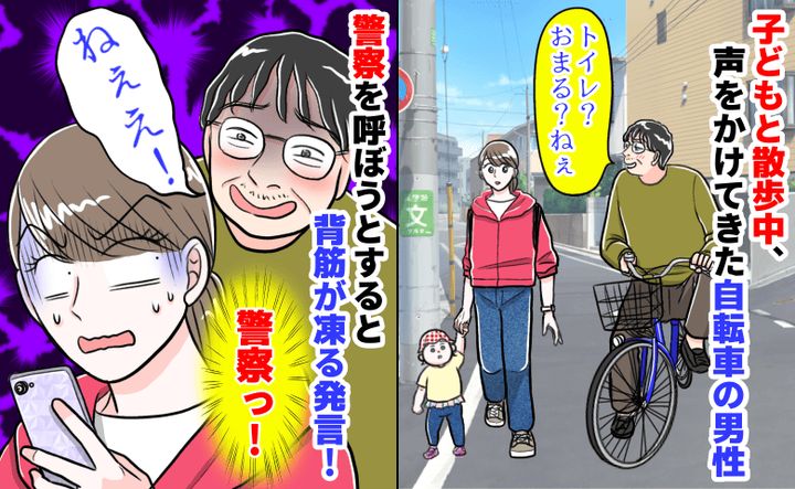子どもと散歩中、自転車の男性が「トイレ?おまる?ねぇ」とボソッ。警察を呼ぼうとすると背筋が凍る発言!