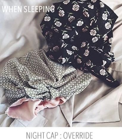 髪が長いと絡まりやすく、とくに睡眠時は寝返りによる摩擦がつきものなので注意が必要。そのためシルク100%のナイトキャップをかぶっています。シルクは静電気が起こりにくく保湿力があり、寝ている間にケアできるのでオススメです(毛髪診断士・shucoさん)