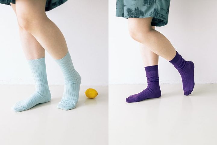 写真は、レディースの定番ベストセラー「8×2リブソックス」。なめらかなエジプトコットンを使用し、発色がよく、カラーバリエーションも豊富。シンプルで使いやすく、革靴やパンプス、サンダル、スニーカーなど、幅広いスタイルにマッチ。