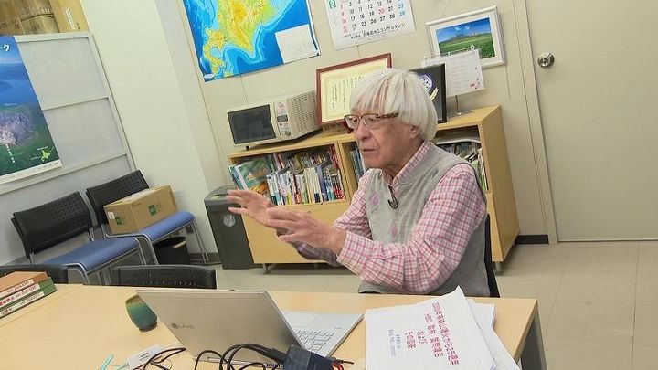 2000年の噴火を予知した有珠山研究の第一人者、北海道大学の岡田弘(おかだひろむ)名誉教授。