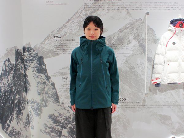 スタッフの方にお願いし、「ゴアテックス クレアス ワンビル限定別注カラー グリーン」を試着いただきました。しっかりとした作りで重そうに見えますが、女性でも軽々と着用することができます。 全く同じカラーではないものの、以前「クレアス」で販売したグリーンカラーが好評だったため、今回も新たなグリーンで登場しました。限定30着とのことで、早速購入された方も。