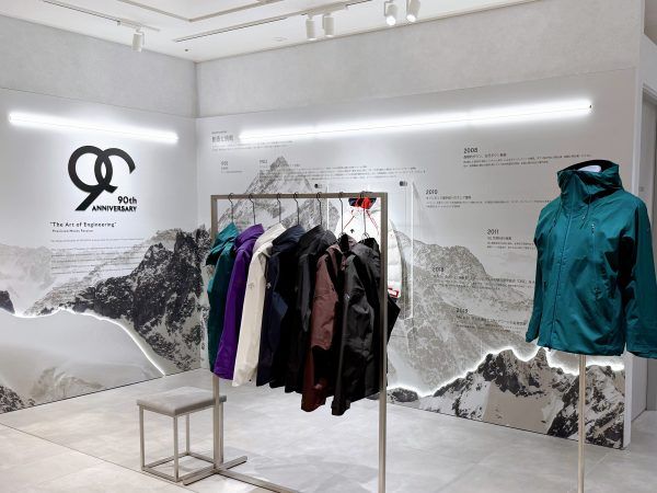 壁面には、今年で90周年を迎える「デサント」の歴史や技術力を紹介するディスプレイが施されているのが見えます。