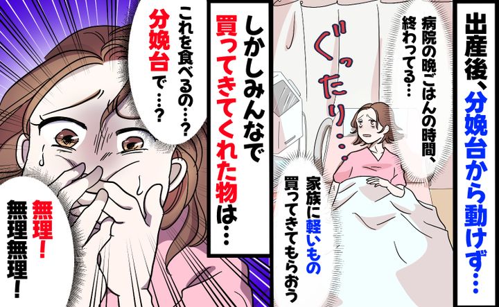 出産後に血が止まらず分娩台から動けない「病院の夕飯の時間終わってる…」家族におつかいを頼んだ結果