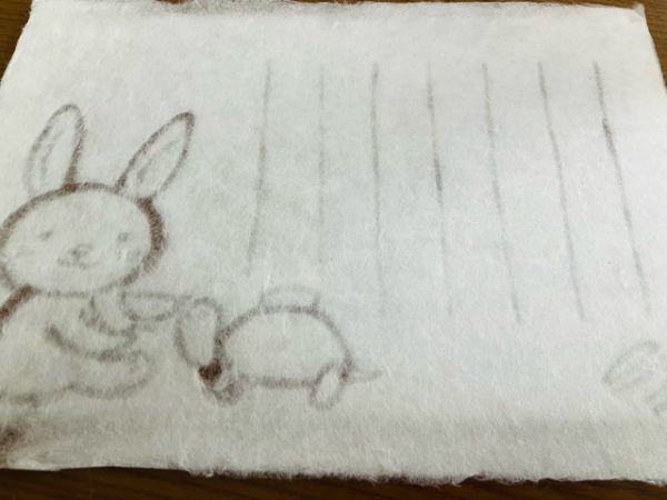 あっという間に乾いて和紙が出来上がりました。きれいな和紙が出来上がり大満足です。何を書こうかと迷っていましたが、勿体なくてなかなか書けません。大事に飾ってあります。