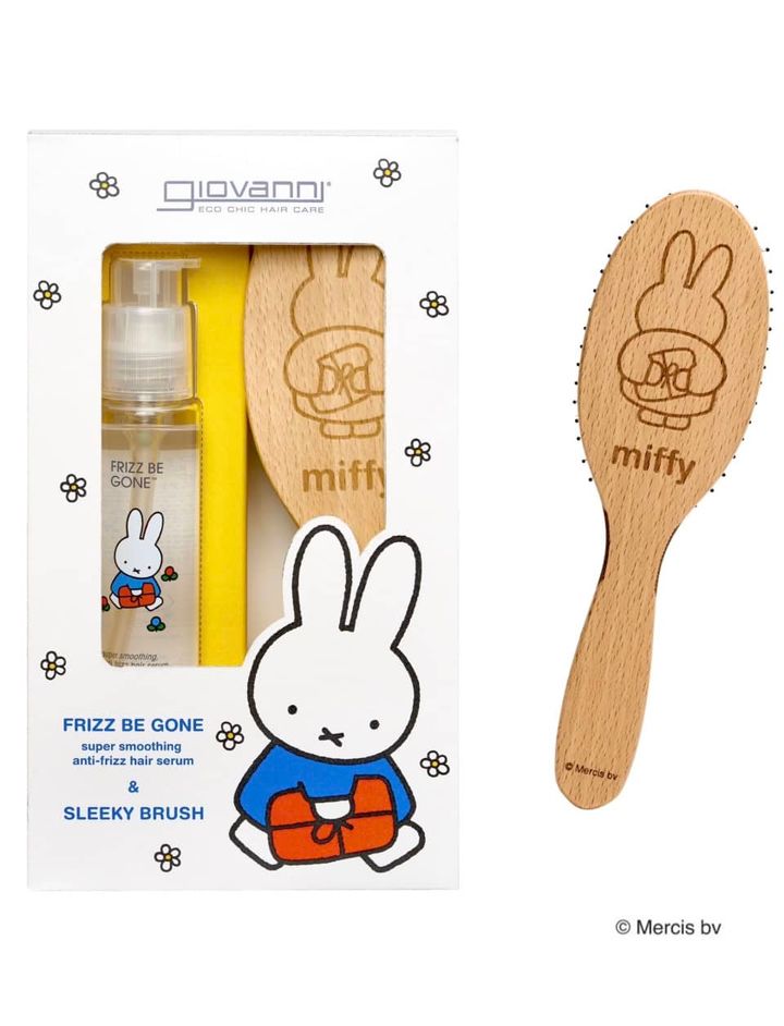 第1弾のコラボで大人気だったスリーキーブラシが、ヘアセラムとセットになって再登場! 前回購入できなかった方は、今回絶対に見逃せないキットです。「こっそりプレゼントを持つ、うしろ姿のmiffy」がファンにはたまらないデザイン。