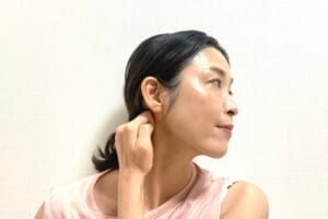 続いて手のひらをグーにして耳下に当てます。