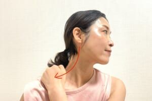 耳下から肩先に向かって5回スライドします。