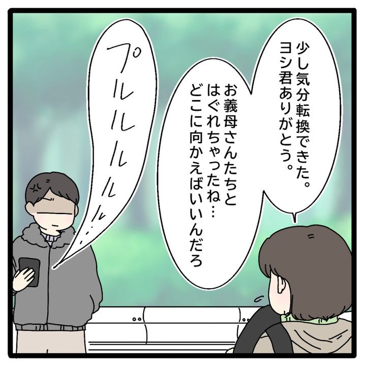しばらくするとあかりも泣き止んだので私はヨシオに「少し気分転換できた。ヨシ君ありがとう。お義母さんたちとはぐれちゃったね・・・どこ向かえばいいんだろ」と話しかけました。