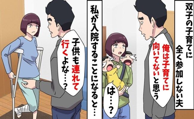 双子の育児を一切しない夫。妻が入院「双子も連れて行くよな?」は?離婚したいと伝えた結果?