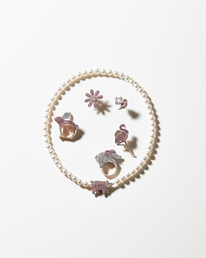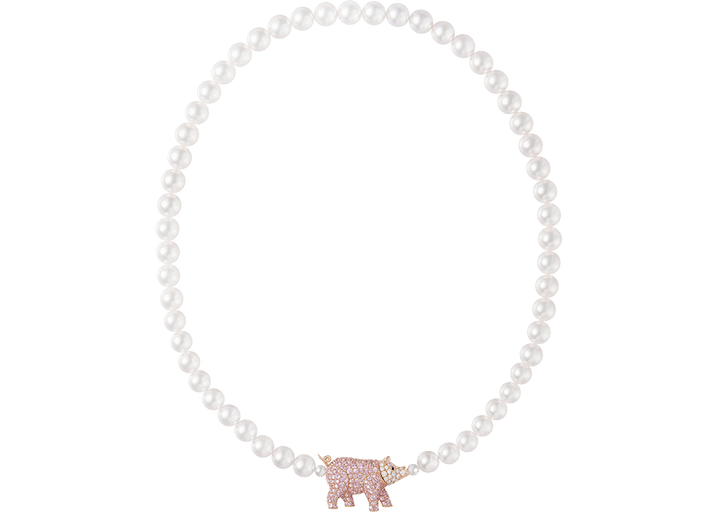 豚に真珠ネックレス[あこやパール×K18RG×K18YG×ピンクサファイア×DIA×ブラックDIA]¥3,113,000(全てMIO HARUTAKA/MIO HARUTAKA Tokyo)