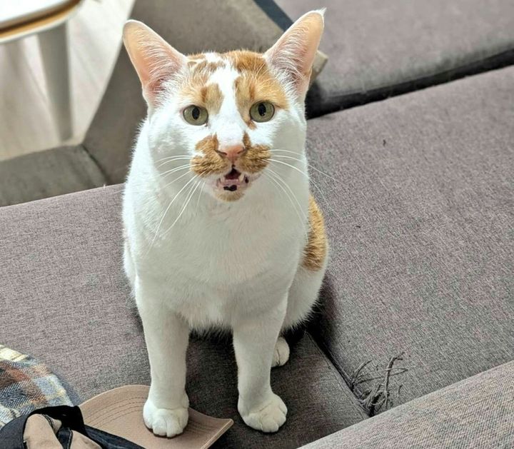 口をカッと開けた瞬間がうまく撮影されていますね。パッチリ開いた目とピンと立った耳も相まって、まるで本当におしゃべりしているかのような、何かを訴えかけているような表情です。帰りの遅い夫に向かって、しょぼぼくんが「遅いぞ!」「こんな時間までどこで何をしていたんだ!」と、もんちこさんの代わりに文句を言っているのかもしれません。