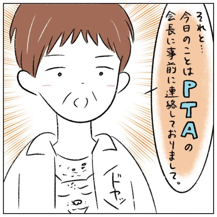 なんとか気持ちを落ち着かせたお母さんが「それと・・今日のことはPTAの会長に事前に連絡しておりまして」と切り出すと、