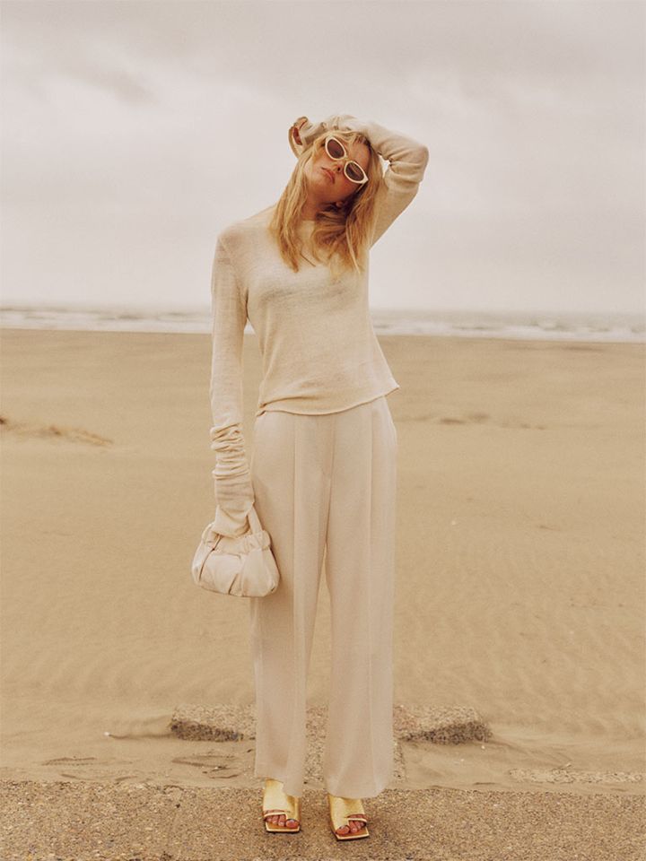 シンプルなスタイルを今に変えていくためには、白のフィルターを通すことでイメージどおりにことが進むはず。やさしい色が生きてくる涼し気な素材で、シーズンレスな装いを今にアジャスト。
