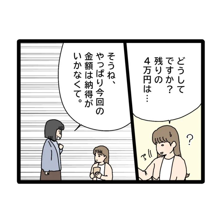 「どうしてですか?残りの4万円は・・」意味がわからずアヤカさんが質問すると、「そうね、やっぱり今回の金額は納得がいかなくて」と話し出す義母に、