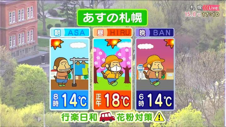 あす6日(火)の札幌です!朝昼晩の天気をもんすけでお伝えします!